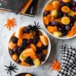 This festive Halloween Fruit Salad features a colorful mix of fresh cantaloupe pumpkins, blackberries, mandarin oranges, cherries, golden berries, and apricots, all tossed in a sweet and tangy honey-orange dressing. Perfect for a healthy and visually appealing treat at any Halloween party.