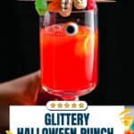 A spooky and refreshing Halloween Punch made with cran-pineapple juice, ginger ale, and coconut water, optionally enhanced with edible gold glitter dust and garnished with creepy gummy candies. Perfect for parties and can be served with or without coconut rum for a festive touch.