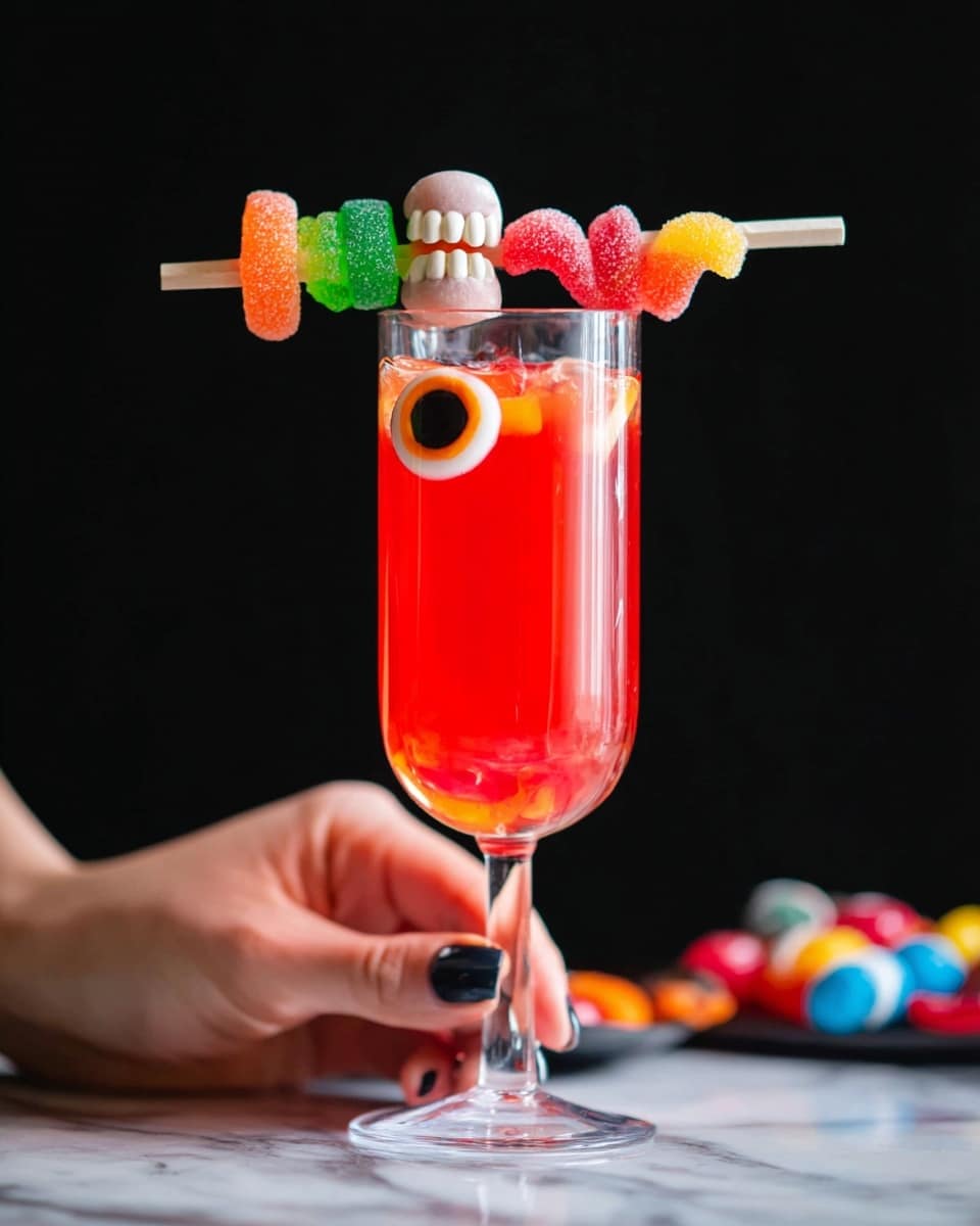 - Gummy eyeballs, vampire teeth, and worms: These whimsical garnishes bring out the holiday spirit with a playful creepiness kids and adults alike adore.