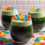 Ladle the green punch into glasses, leaving enough room at the top for the foam. Then, spoon a generous dollop of the toxic waste foam on top of each glass. The creamy foam will look like bubbling radioactive slime—so cool! If you want to go all out, toss a few gummy worms, frogs, and snakes right on top or let them hang over the edges. It’s a surefire way to impress your guests.