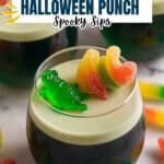 - Garnish with decorations: For extra spookiness, add gummy worms, gummy frogs, and gummy snakes either into the punch bowl or onto individual drinks as decorations.
