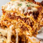 A family favorite Italian-American lasagna recipe featuring layers of oven-ready noodles, rich bolognese meat sauce, creamy herbed ricotta, and melty mozzarella and Parmesan cheeses baked to golden perfection.
