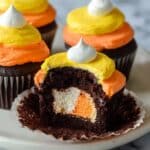 These Irish Car Bomb Cupcakes combine rich Irish stout chocolate cupcakes with a boozy Irish whiskey caramel mousse filling and a festive Bailey’s whipped buttercream frosting, creating a decadent dessert with a fun candy corn swirl effect.