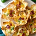 Freezing works well if you make a big batch! After baking but before adding the final cheese and bacon topping, flash freeze the filled wonton cups on a tray, then transfer them to a freezer-safe bag. When ready to enjoy, bake from frozen with the toppings added and extend baking time by a few minutes. This helps keep their texture intact.
