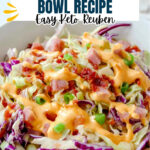A delicious keto-friendly take on the classic Reuben sandwich, served deconstructed in a bowl with tender corned beef, sautéed coleslaw, melted Swiss cheese, and a tangy Russian dressing. This low-carb dish is quick to prepare and perfect for a satisfying meal.