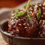 - Glaze and Garnish: Once meatballs are cooked, brush them generously with the prepared glaze. Sprinkle with sliced green onions and toasted sesame seeds before serving.