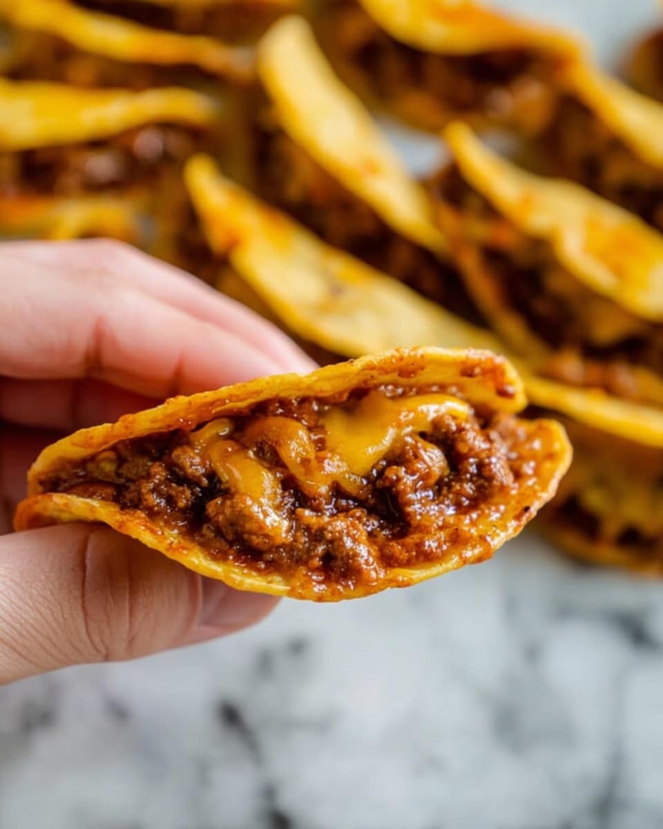 - Fold and Serve: Remove from the oven and immediately fold each mini taco gently to form a taco shape. Serve hot with your favorite salsa and sour cream for dipping.