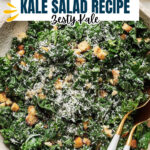 Pour your dressing right over the kale and croutons. Then sprinkle the grated Parmesan cheese generously on top. Toss it all together gently but thoroughly so every leaf and crouton gets coated. Now, it’s ready to eat! I usually serve it immediately for the best crunch, but you could refrigerate it for a couple of days if needed.