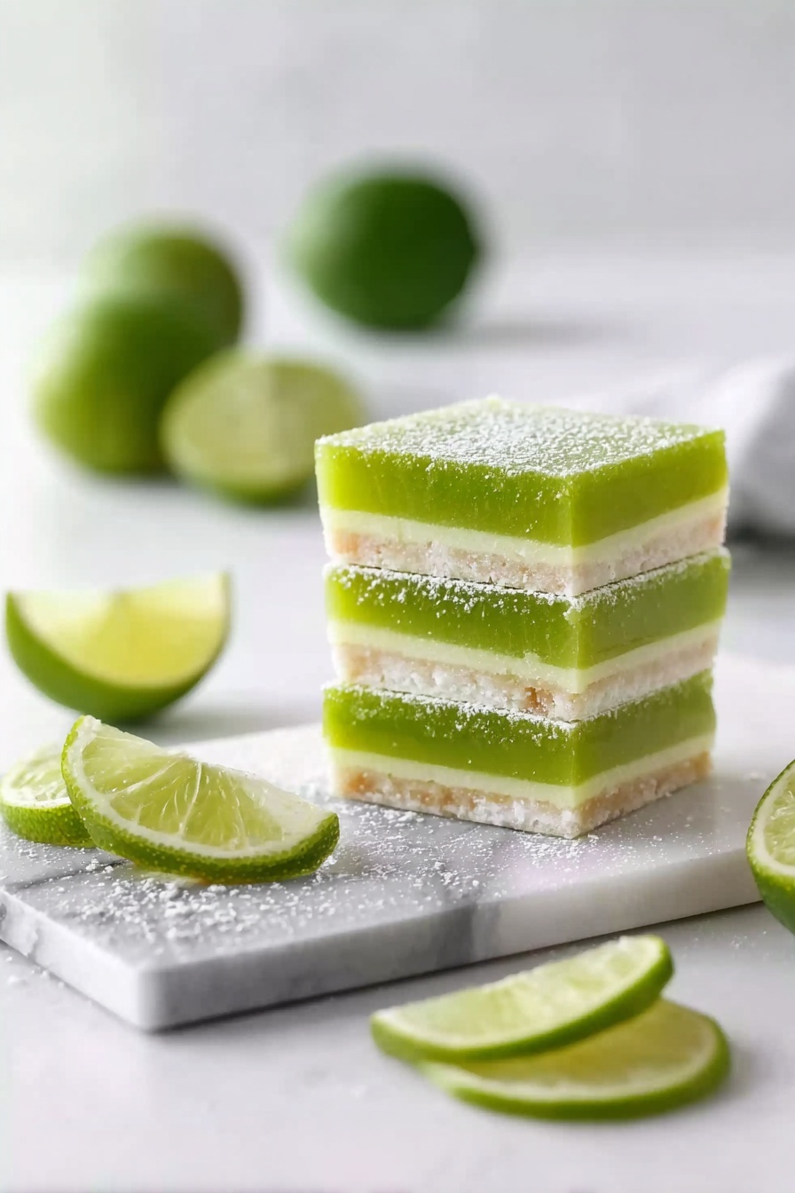 I often dust these lime bars with a light sprinkle of powdered sugar before serving for that pretty, delicate touch. If you want to get fancy, a small dollop of whipped cream or a thin slice of lime zest makes them pop visually and adds a little extra zing.