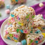 Deliciously sweet and chewy Lucky Charms Treats made with melted marshmallows, butter, and the colorful Lucky Charms cereal. These treats are easy to prepare and perfect for a fun snack or dessert, with an optional white chocolate drizzle for extra indulgence.