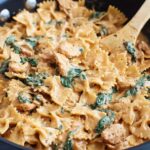 - Cook Pasta: While chicken cooks, bring a pot of salted water to a boil and cook farfalle pasta according to package directions until al dente. Drain and set aside.