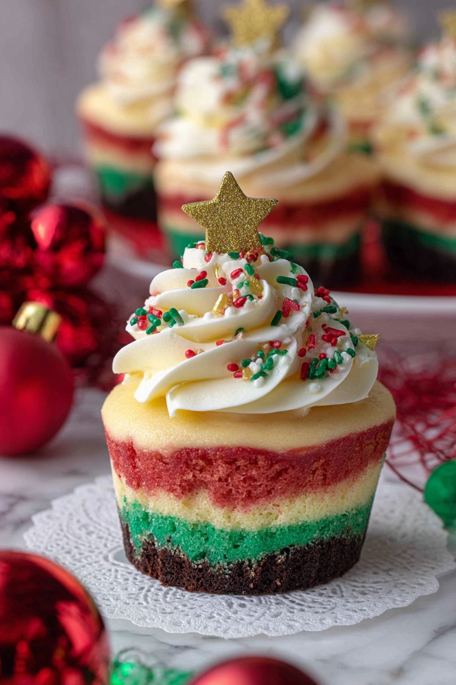 I’m a sucker for the classic whipped cream topping—it adds airiness that balances the dense cheesecake. I top mine with multicolored sprinkles or edible glitter because, honestly, what’s Christmas without some sparkle? Another favorite is finely chopped pistachios for a subtle crunch and festive green color.