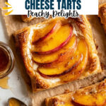 - Assemble Tarts: Place pastry squares on a baking sheet. Fold up edges about 1/4 inch to create a border. Place two cream cheese slices in the center, drizzle some honey mixture over cheese, then arrange peach slices evenly on top. Brush dough edges with heavy cream and sprinkle generously with cinnamon sugar. Drizzle additional honey over tarts.