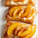 - Assemble Tarts: Place pastry squares on a baking sheet. Fold up edges about 1/4 inch to create a border. Place two cream cheese slices in the center, drizzle some honey mixture over cheese, then arrange peach slices evenly on top. Brush dough edges with heavy cream and sprinkle generously with cinnamon sugar. Drizzle additional honey over tarts.