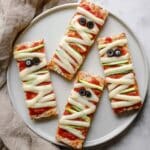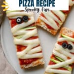 This Mummy Pizza Recipe pairs wonderfully with a simple green salad tossed in lemon vinaigrette or some crunchy garlic-roasted asparagus. For an extra playful touch, I sometimes serve it alongside “witch’s fingers” carrot sticks with hummus.