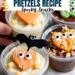 Mummy Pretzels with Creepy Pudding Cups Recipe