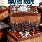 Make sure to chill each layer uncovered for the recommended times—the crust firms up in the freezer, and the chocolate layers in the fridge. Skipping or shortening chilling times may result in softer squares that are harder to cut.