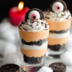 - Garnish and Chill: Garnish with crushed Oreos and the spooky eyes on top. Refrigerate parfaits for 3-4 hours before serving to allow them to set and flavors to meld.
