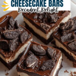 Delicious Brownie Cheesecake Bars featuring a rich brownie base layered with creamy cheesecake, topped with chocolate ganache and crunchy Oreo pieces. Perfect for dessert lovers seeking a decadent treat.
