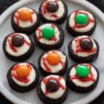 I keep leftover Oreo eyeballs in an airtight container in the fridge, and they hold up beautifully for 3-4 days. Just make sure they’re chilled so the red candy melts don’t get sticky or melt. When you pull them out, they’re ready to serve immediately.