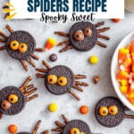I once arranged my Oreo spiders crawling out of a small “spider web” made of white chocolate drizzled onto parchment. It was a showstopper at a Halloween party! Another fun idea is to serve them poking out of a “witch’s cauldron” bowl filled with candy corns for an extra festive touch.