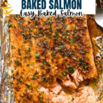 This Oven Baked Salmon recipe features a whole skin-on salmon fillet seasoned with a flavorful blend of melted butter, garlic, brown sugar, Italian seasoning, paprika, garlic powder, salt, and pepper. Baked to succulent perfection at 375°F, the salmon remains moist and tender, ideal for a simple yet elegant dinner.