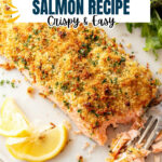 This Parmesan Crusted Salmon recipe features a wild salmon fillet topped with a savory mixture of breadcrumbs, Parmesan cheese, garlic, and fresh herbs, baked to golden perfection and delivering a crunchy, flavorful crust with tender, flaky fish inside. It’s a quick and elegant dish ideal for a healthy dinner.