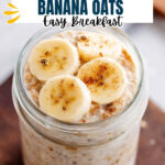 This Peanut Butter and Banana Overnight Oats recipe is a quick, nutritious, and delicious no-cook breakfast option. Rolled oats soaked overnight in milk are combined with peanut butter and sweetened with maple syrup, then topped with fresh banana slices for a creamy and satisfying meal ready to grab and go in the morning.