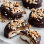 - Coat sandwiches: Dip each peanut butter sandwich into the melted vegan chocolate, ensuring it is fully covered, then place it on a parchment-lined baking tray.