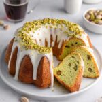 - Prepare and apply glaze: While the cake cools, whisk together the powdered sugar, vanilla extract, and 1 to 2 tablespoons of milk to make the glaze. Drizzle the glaze over the cooled cake evenly and garnish with additional chopped pistachios for a decorative finish.
