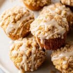 These Pumpkin Crumb Cake Muffins are moist, tender, and bursting with warm pumpkin spice flavors. Topped with a buttery crumb topping and optional maple icing, they make a perfect fall breakfast or snack treat.