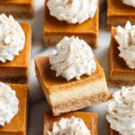 Delicious Pumpkin Pie Bars with a buttery shortbread crust, creamy pumpkin filling, and topped with freshly whipped cream. Perfect for fall gatherings and holiday treats.