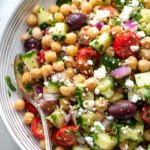 This Quick Mediterranean Chickpea Salad Recipe uses simple, wholesome ingredients that play really well together. The freshness of cucumbers and tomatoes, the briny pop of olives, and the earthy chickpeas all get brought to life with a vibrant homemade dressing. When shopping, grab the freshest produce you can find, and don’t skimp on good-quality olive oil — it makes such a difference!