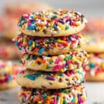 These Rainbow Sprinkle Cookies are soft, buttery sugar cookies coated with colorful nonpareil sprinkles, perfect for any festive occasion or a fun treat. Made with cream cheese and a hint of almond extract, they have a tender texture and a delightful flavor that kids and adults will love.