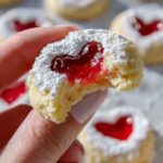 To enjoy frozen cookies, I let them thaw at room temperature completely—don’t microwave, or the jam may melt. If you want to refresh their crispness, a quick 2-3 minutes in a low-temperature oven (around 300°F) works wonders but do this before adding jam and powdered sugar.
