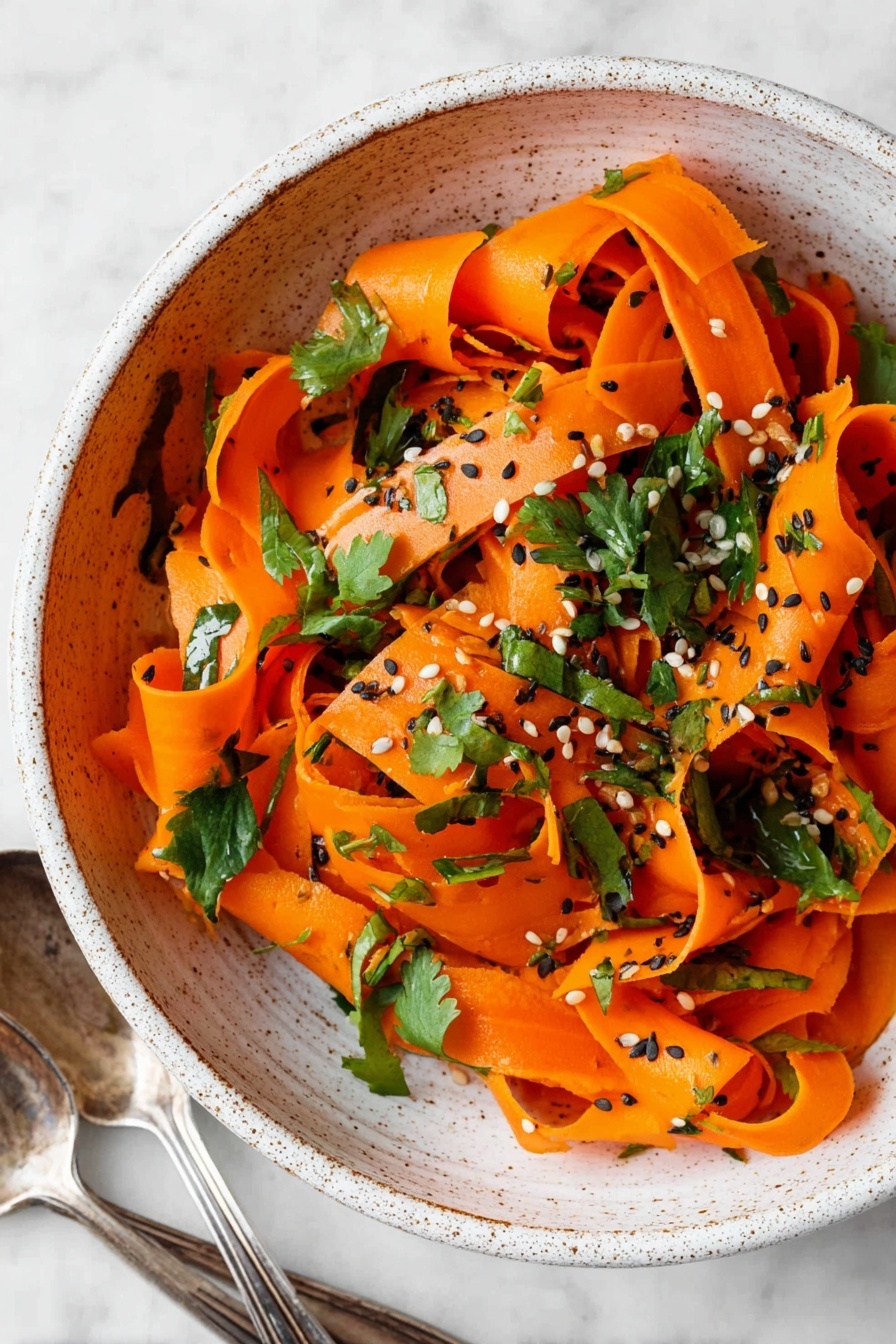 For parties, I’ve served this salad in individual clear cups or small mason jars layered with colorful herbs and garnishes—it’s super cute and makes for easy grab-and-go portions. Another fun idea is to roll the carrot ribbons into little spirals and skewer them with a bit of fresh mint or parsley for a nibble-sized appetizer.