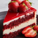 This Red Velvet Strawberry Cheesecake is a luscious layered dessert featuring a moist red velvet cake base topped with a creamy cheesecake layer, fresh strawberries, and sweet strawberry preserves. Finished with a swirl of whipped cream, it’s perfect for special occasions or indulgent treats.