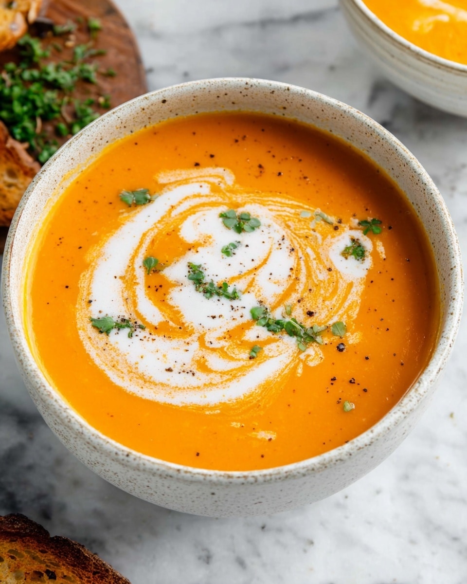I usually top my soup bowls with a drizzle of extra coconut milk, a sprinkle of freshly cracked black pepper, and a handful of chopped fresh parsley. The coconut milk swirl makes the presentation feel special, and parsley adds a lovely pop of color and freshness that cuts through the creamy richness.