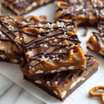 Salted Caramel Pretzel Bark is a delightful treat combining smooth milk chocolate, crunchy pretzels, and rich caramel drizzle, perfect for an easy no-bake dessert or snack that offers a perfect balance of sweet and salty flavors.