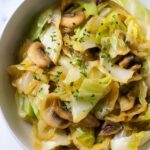 A simple and flavorful sautéed cabbage recipe that caramelizes green cabbage ribbons with olive oil and butter, seasoned with salt, pepper, and brightened with apple cider vinegar and fresh thyme for a delicious and healthy side dish.