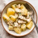 Once the chicken is tender and the potatoes are fork-soft, I love adding a sprinkle of fresh chopped parsley and a bit more parmesan on top for that vibrant pop of color and bright, cheesy finish. Then it’s ready to dig in!