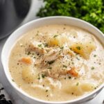 Reheat gently on the stovetop over low to medium heat. Adding a splash of broth or milk helps loosen things up if the soup thickened too much in the fridge. Avoid microwaving for long stretches, as it can dry out the dumplings or make them tough.