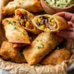 Delicious and crispy Southwest Eggrolls inspired by Chili’s, packed with shredded chicken, black beans, corn, and Monterey Jack cheese, served with a creamy avocado ranch dipping sauce.