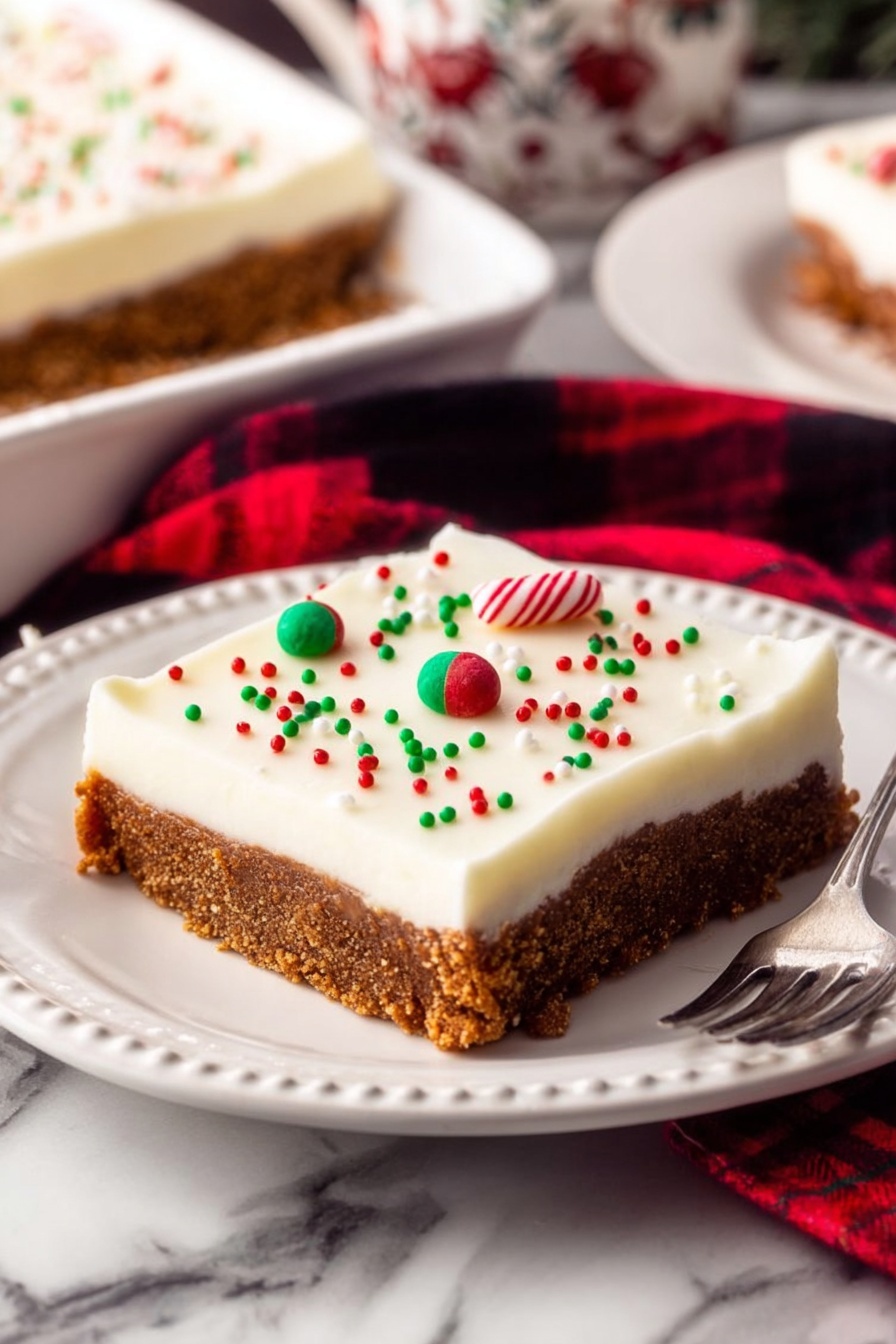 - Cool and Serve: Allow the bars to cool completely in the pan. Optionally, frost with cream cheese or vanilla frosting and add Christmas sprinkles before cutting into 15 squares for serving.