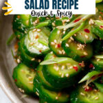 - Assemble the Salad: Pour the dressing over the cucumbers and gently toss to mix without breaking the cucumbers. Garnish with sliced green onions and sprinkle sesame seeds on top. Serve immediately and enjoy!