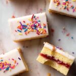 Delight in the nostalgic flavors of Poptart Cookie Bars, featuring a buttery sugar cookie base layered with sweet strawberry preserves and topped with a smooth vanilla glaze and colorful sprinkles. Perfect for a fun dessert or snack, these bars combine the best of pop tarts and cookies in an easy-to-make, shareable treat.