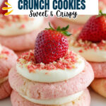 Delight in these Easy Strawberry Crunch Cookies featuring a vibrant strawberry cake mix base, a creamy cream cheese frosting, and a crunchy topping made from freeze-dried strawberries and Golden Oreo crumbs. Perfectly soft and flavorful, these cookies are a wonderful treat for any occasion.