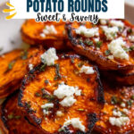 Delicious roasted sweet potato rounds seasoned with warm spices, drizzled with honey, and topped with crumbled feta and fresh herbs for a perfect balance of sweet, savory, and spicy flavors.