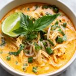 This Easy Thai Chicken Curry Soup combines fragrant red curry paste, creamy coconut milk, tender chicken, and rice noodles in a flavorful broth. It’s a quick and comforting dish perfect for a cozy meal with authentic Thai-inspired taste.