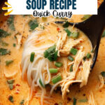 I keep leftover Thai Chicken Curry Soup in airtight containers in the fridge for up to 3 days. Because the noodles soak up liquid, I find it’s best to store the soup with all the ingredients mixed and then add a splash of broth or water when reheating.